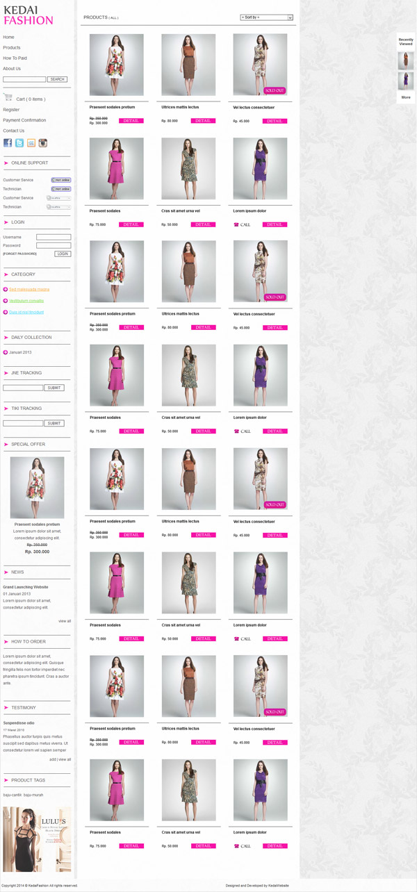 * Support Pengurutan Product dari A-Z, Z-A, Price Range, Newest Products